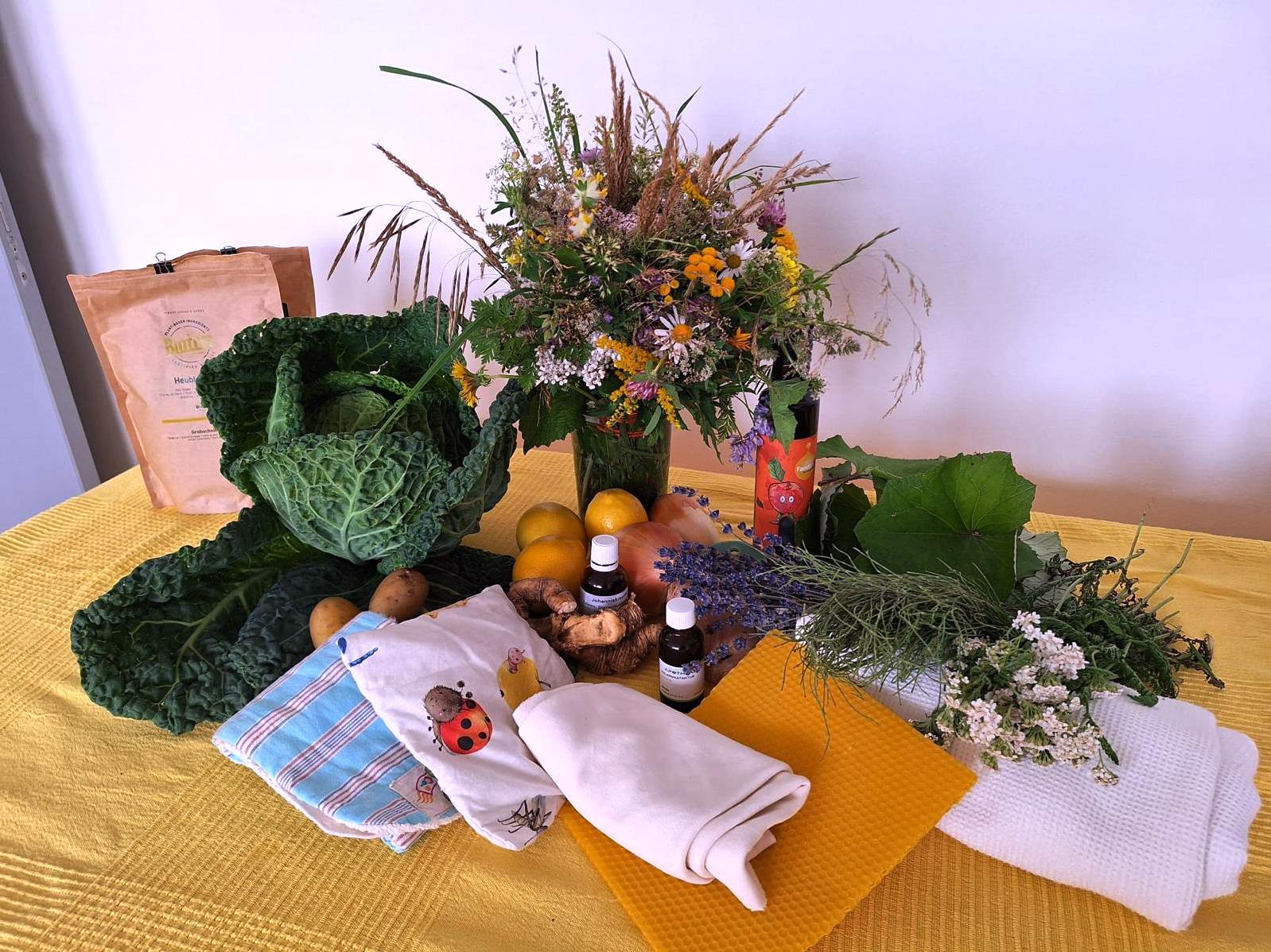 Wickel und Auflagen sind eine einfache, aber sehr effektive Möglichkeit, unser Wohlbefinden zu unterstützen. Besonders Kinder, aber auch ältere Personen sprechen sehr positiv auf diese Anwendungen an. Bei diesem Workshop stellen wir euch unterschiedliche Anwendungsmöglichkeiten und die Wirkungsweise der verschiedenen Kräuter und Nutzpflanzen vor (z.B.: Heublumen, Schafgarbe, Kartoffeln, Topfen, Leinsamen, usw.). Die diversen Kräuterauflagen und Kompressen können von den Teilnehmer/innen selber ausprobiert werden.